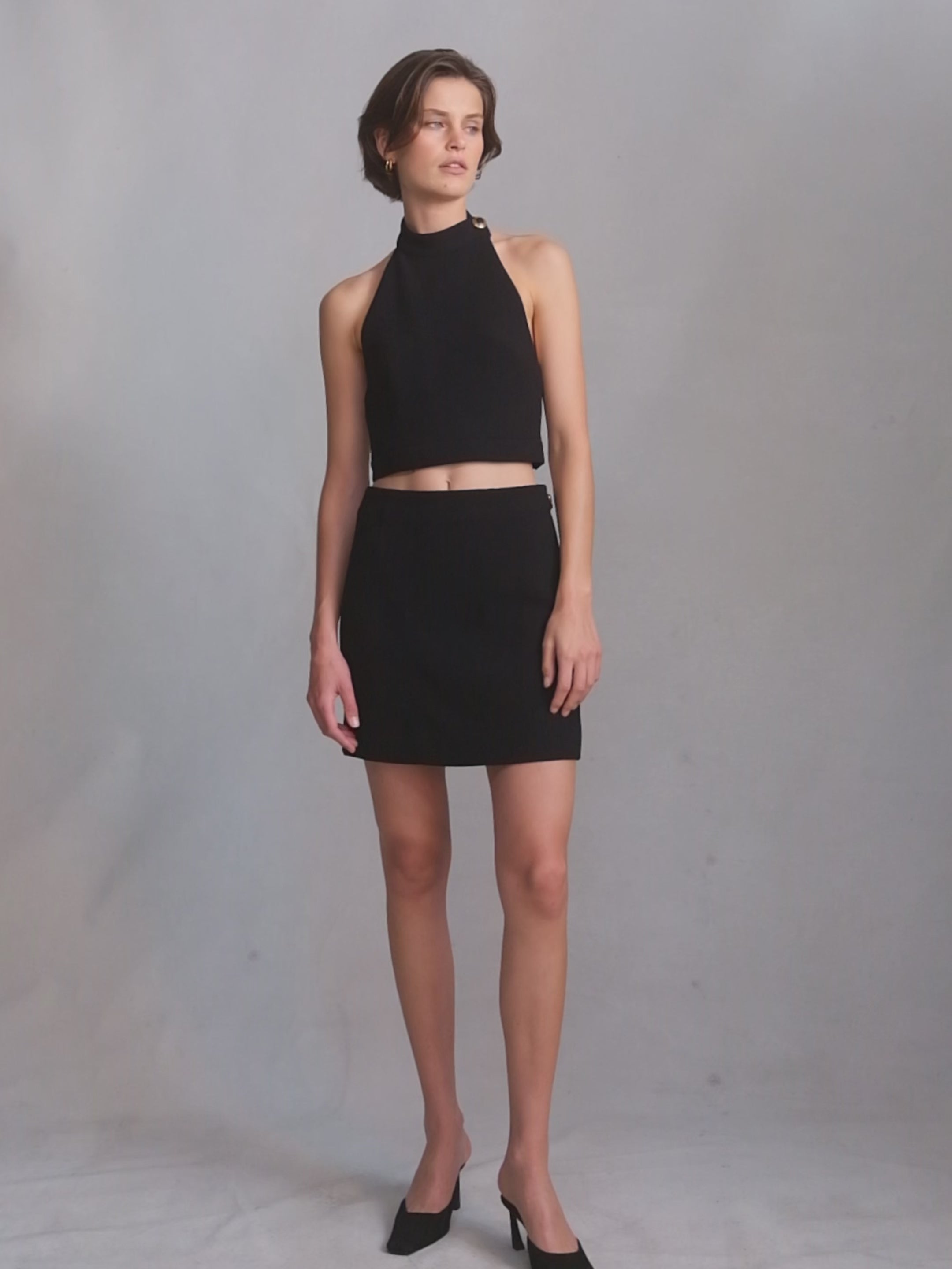 The Gabrielle Crop is an elevated take on eveningwear essentials, designed to flatter the form with a sculpted halter neckline and clean cropped proportion. A versatile piece that transitions seamlessly from refined events to modern tailoring moments.