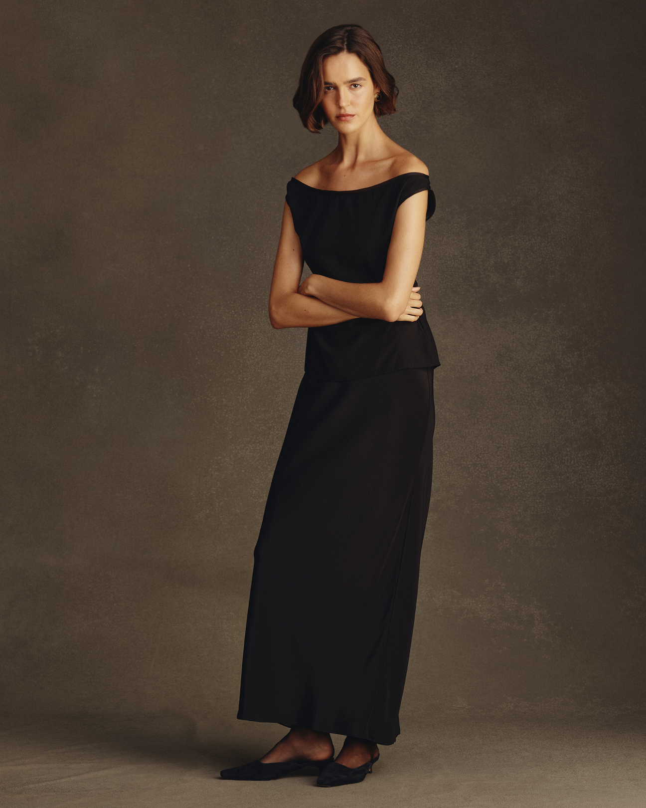 There is the new Alana skirt in pure silk, a maxi, bias cut for some ‘slink’ and and cleverer exposed sheer silk georgette as if its inner working were exposed, beautifully constructed with fully bagged seams. As an idea Alana is connected to the new Faye top, a shifty, playful off-shoulder bodice top in a stretch silk, it features tidy French seams and a decorative exposed silk organza trim at the neck a-la-bias-tape (in olive and black).