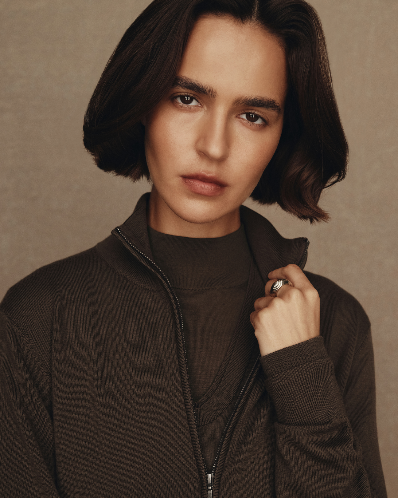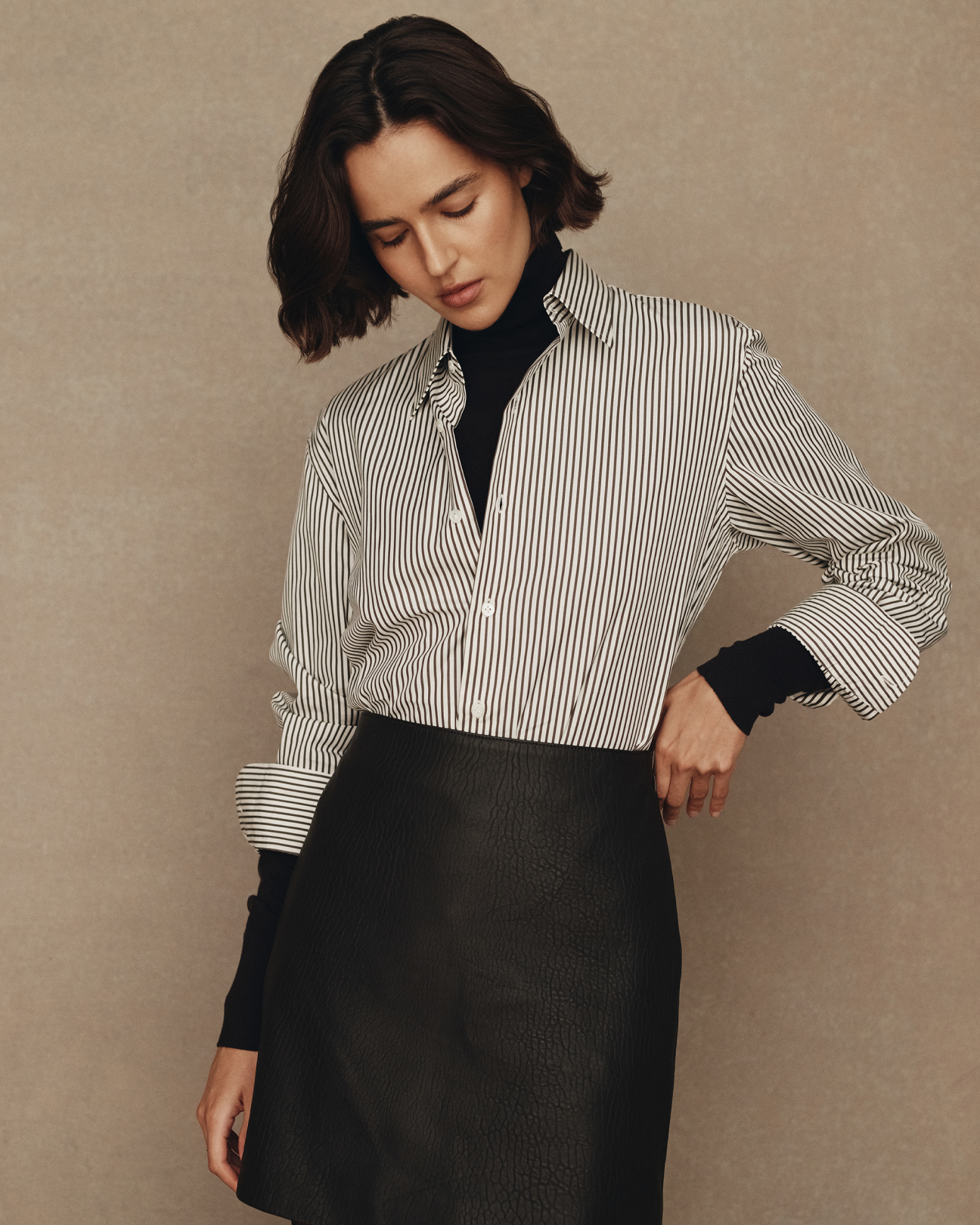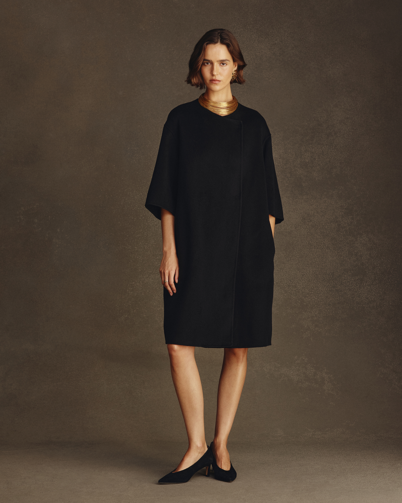 In superfine Merino knits we have the favourite Cass quarter zip and roll neck back in black and espresso brown but what’s new is Daisy - a low round neck with a deliberate and eye-catching doubled ribbed edge set against a semi-fitted shape. Daisy comes in black and our house favourite moss.