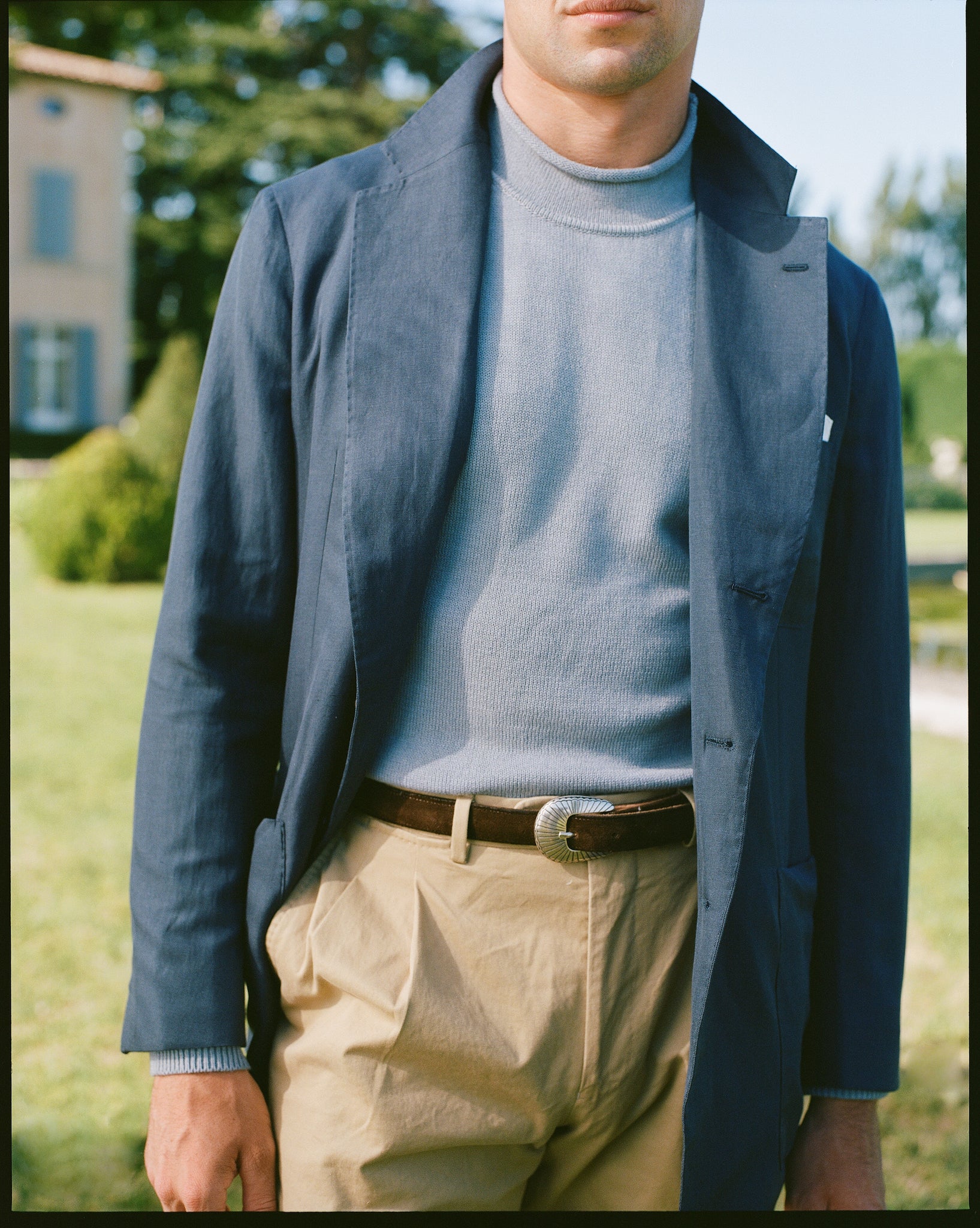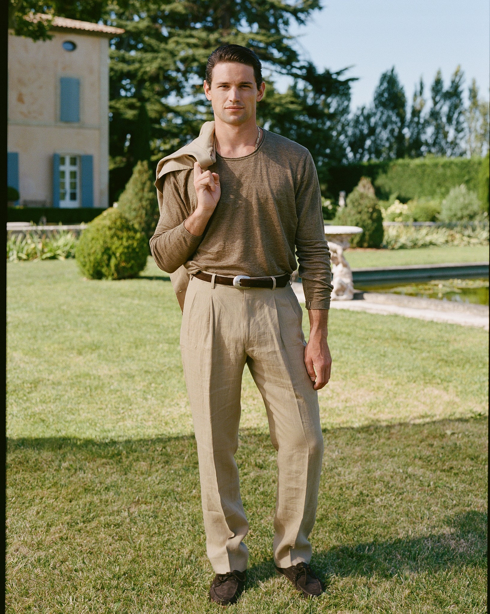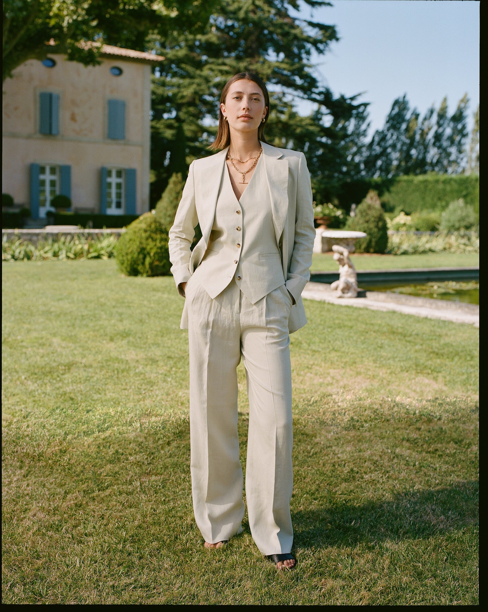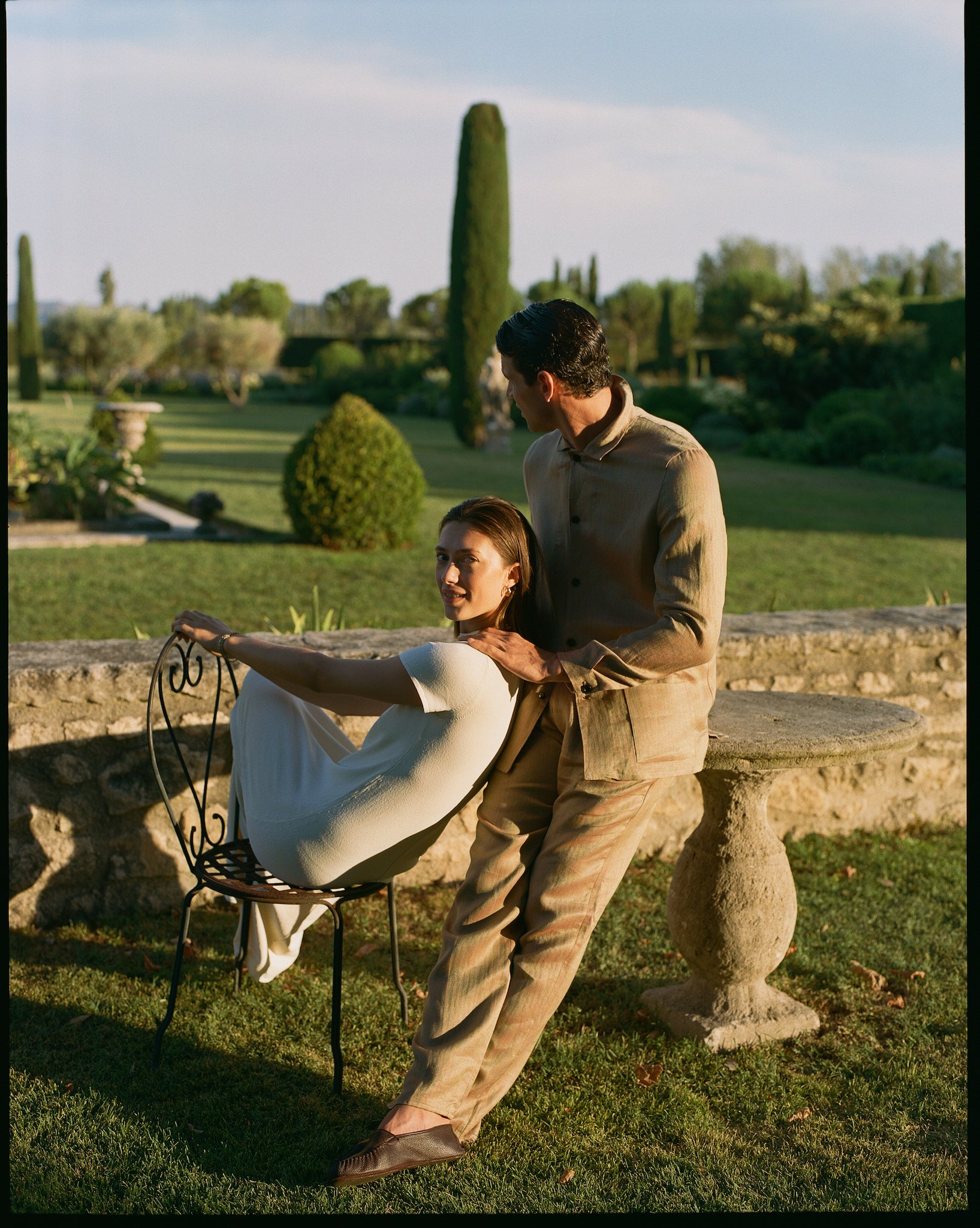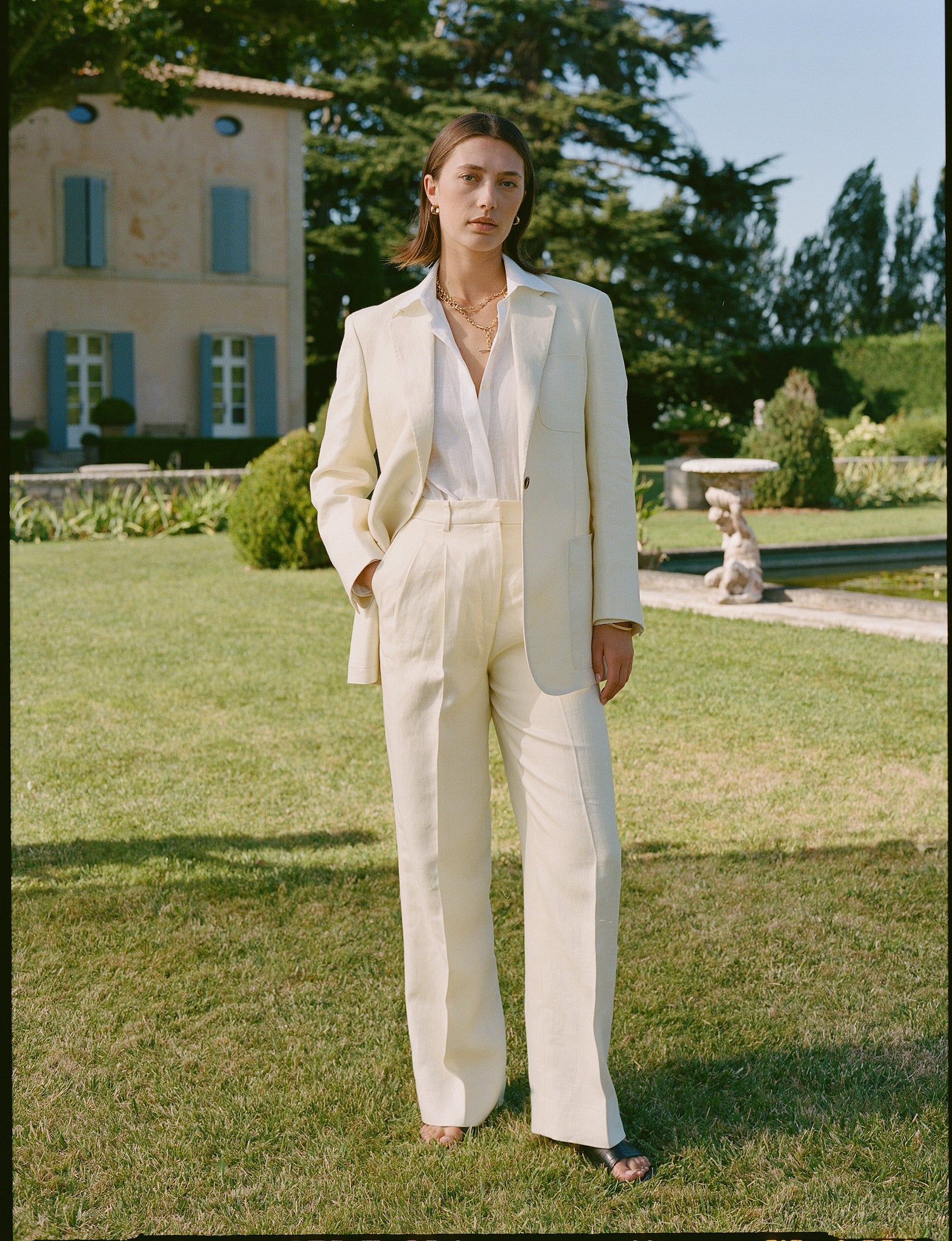 We pile into the Mehari, and with chatter and the rustle of our clothes in the wind, we buzz away to Saint-Remi for a light aperitif. Welcome to Part Two of our little Provencal experience. Here you'll find a collection of softly tailored elegant looks for once you've left the pool and the evening calls.