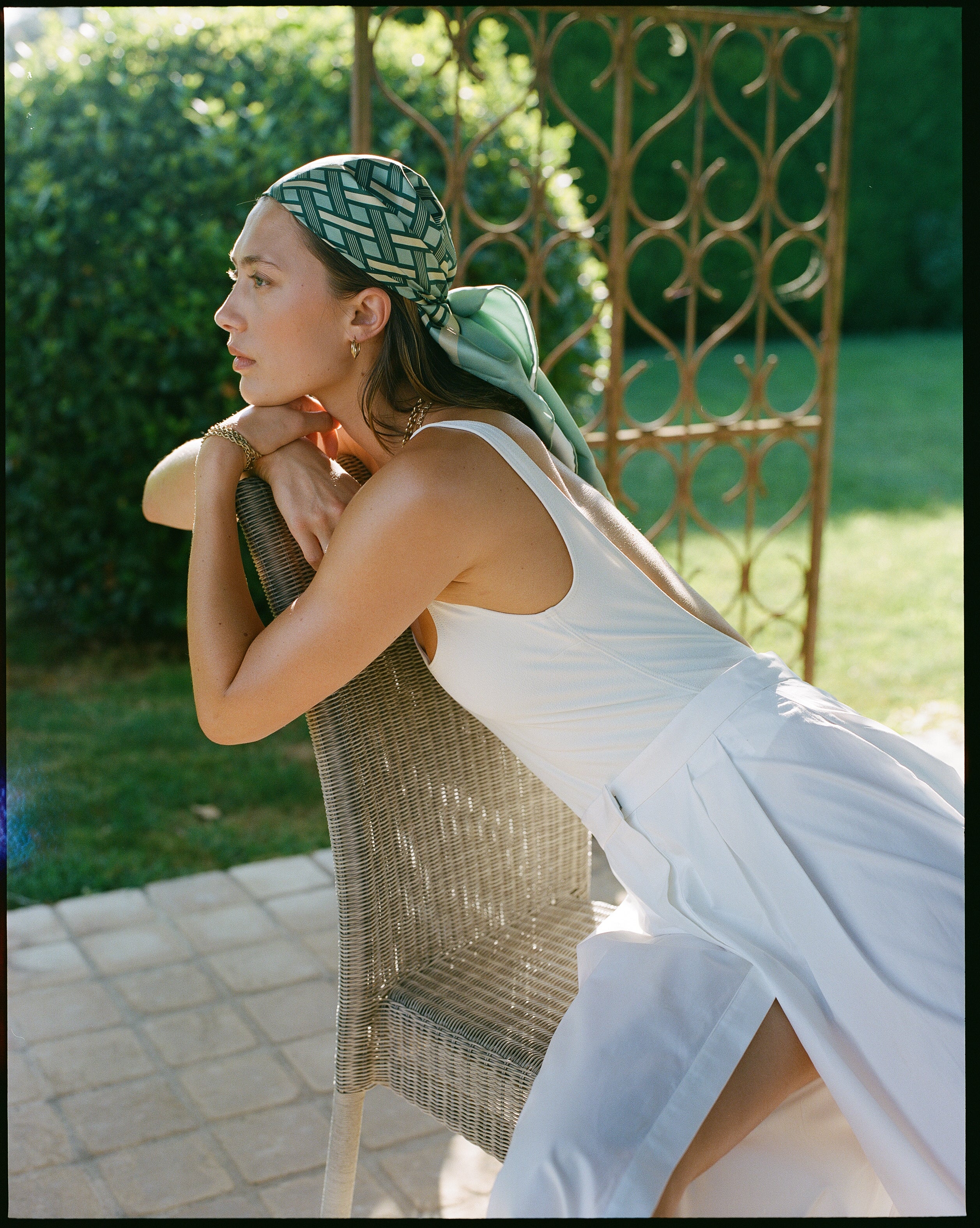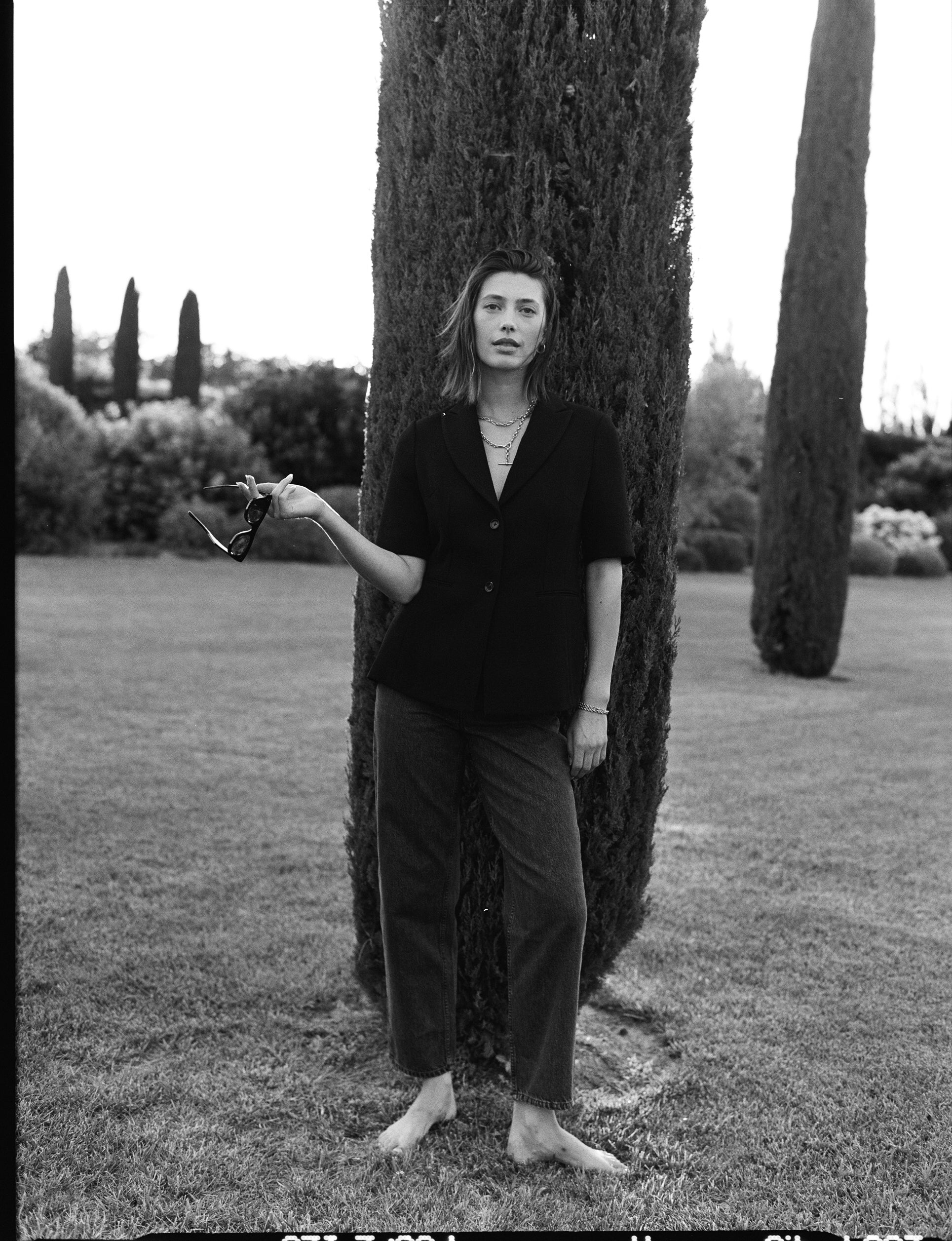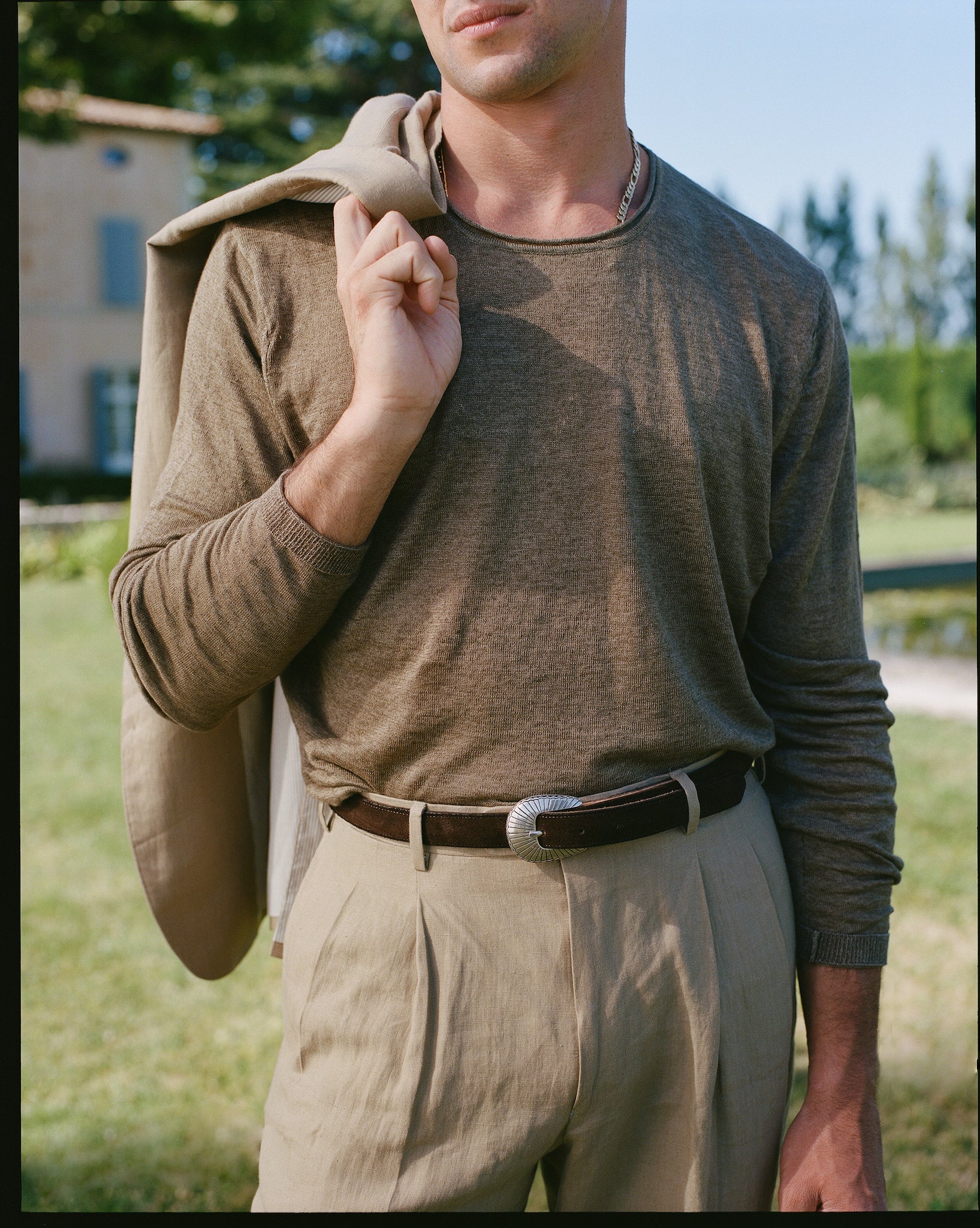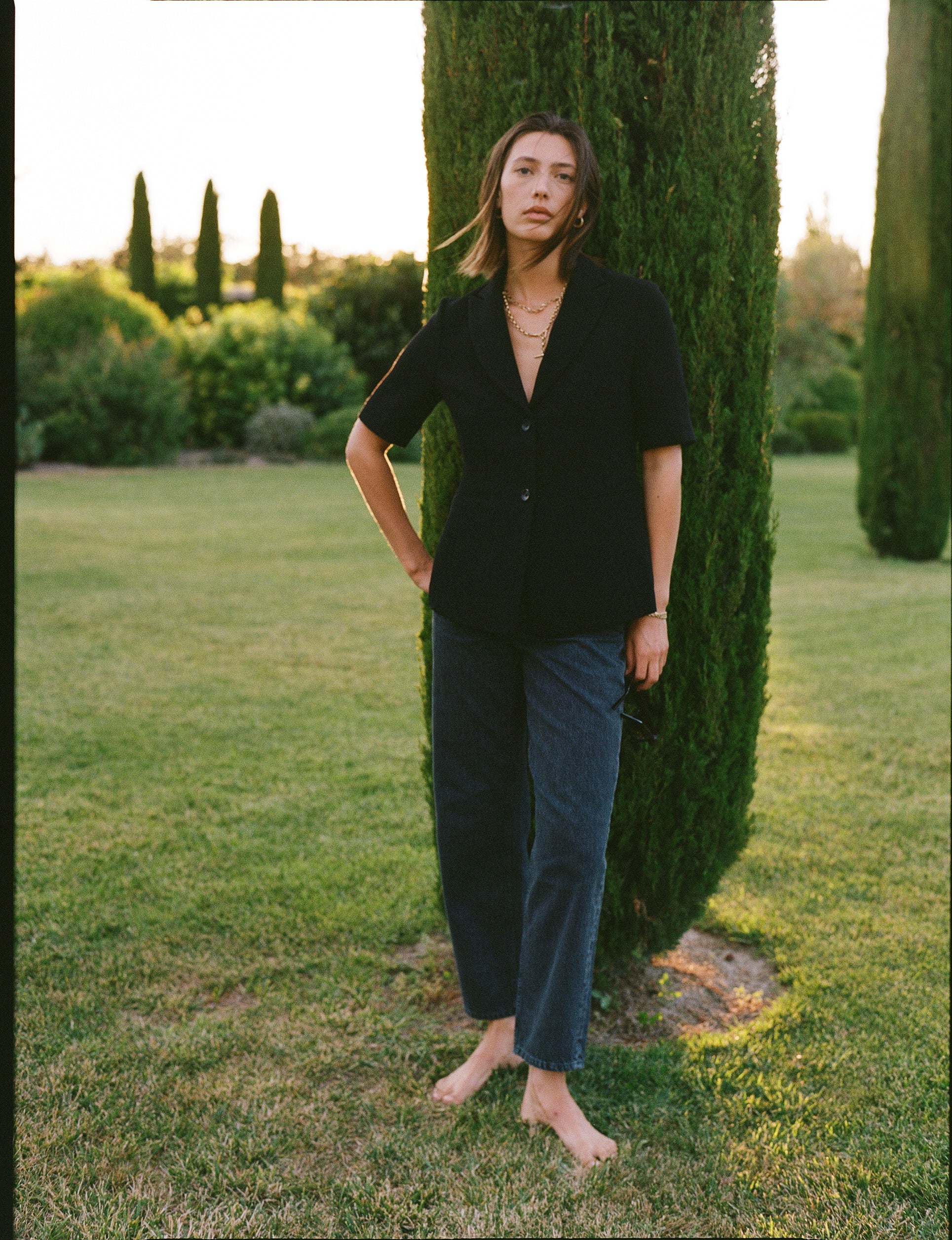 We pile into the Mehari, and with chatter and the rustle of our clothes in the wind, we buzz away to Saint-Remi for a light aperitif. Welcome to Part Two of our little Provencal experience. Here you'll find a collection of softly tailored elegant looks for once you've left the pool and the evening calls.