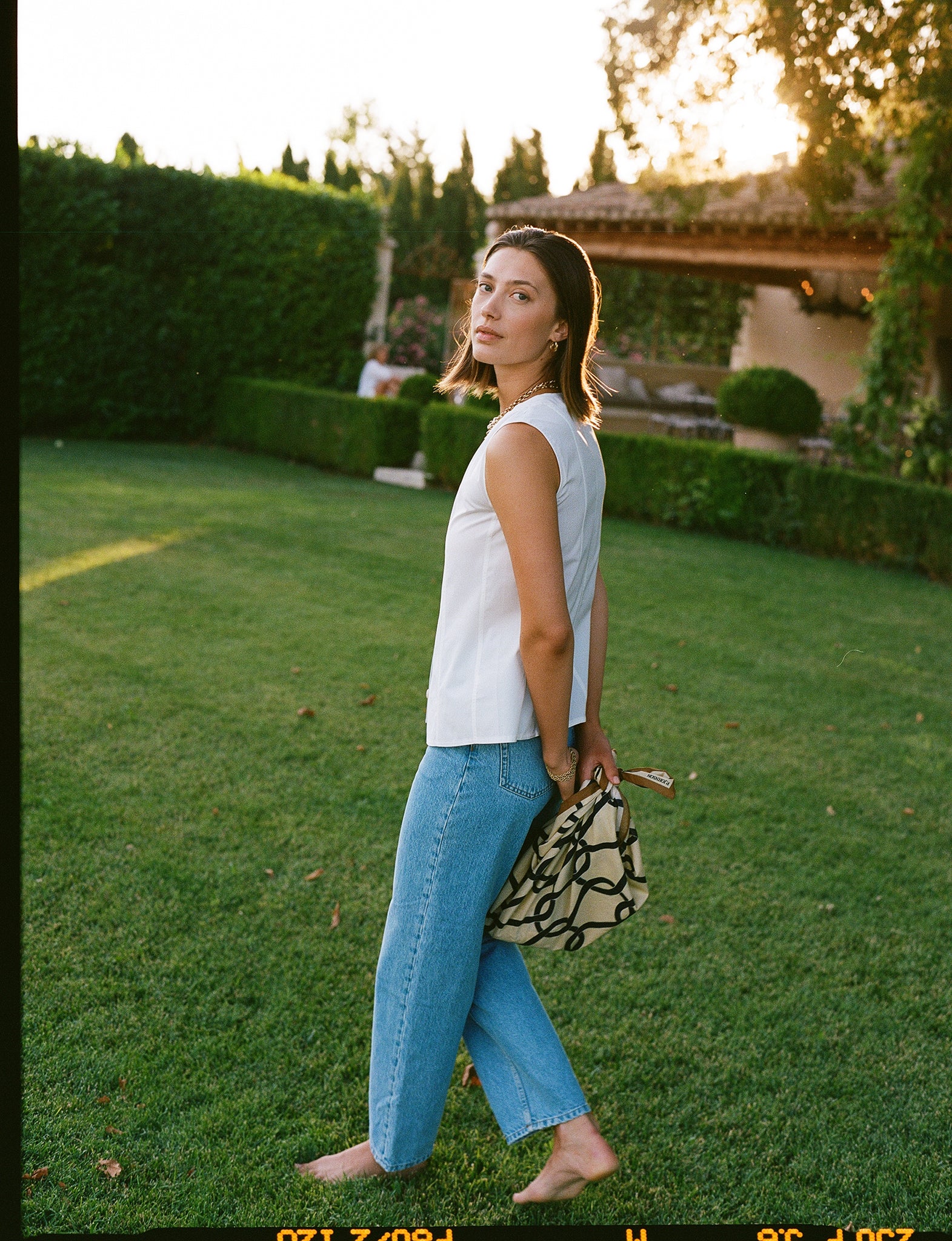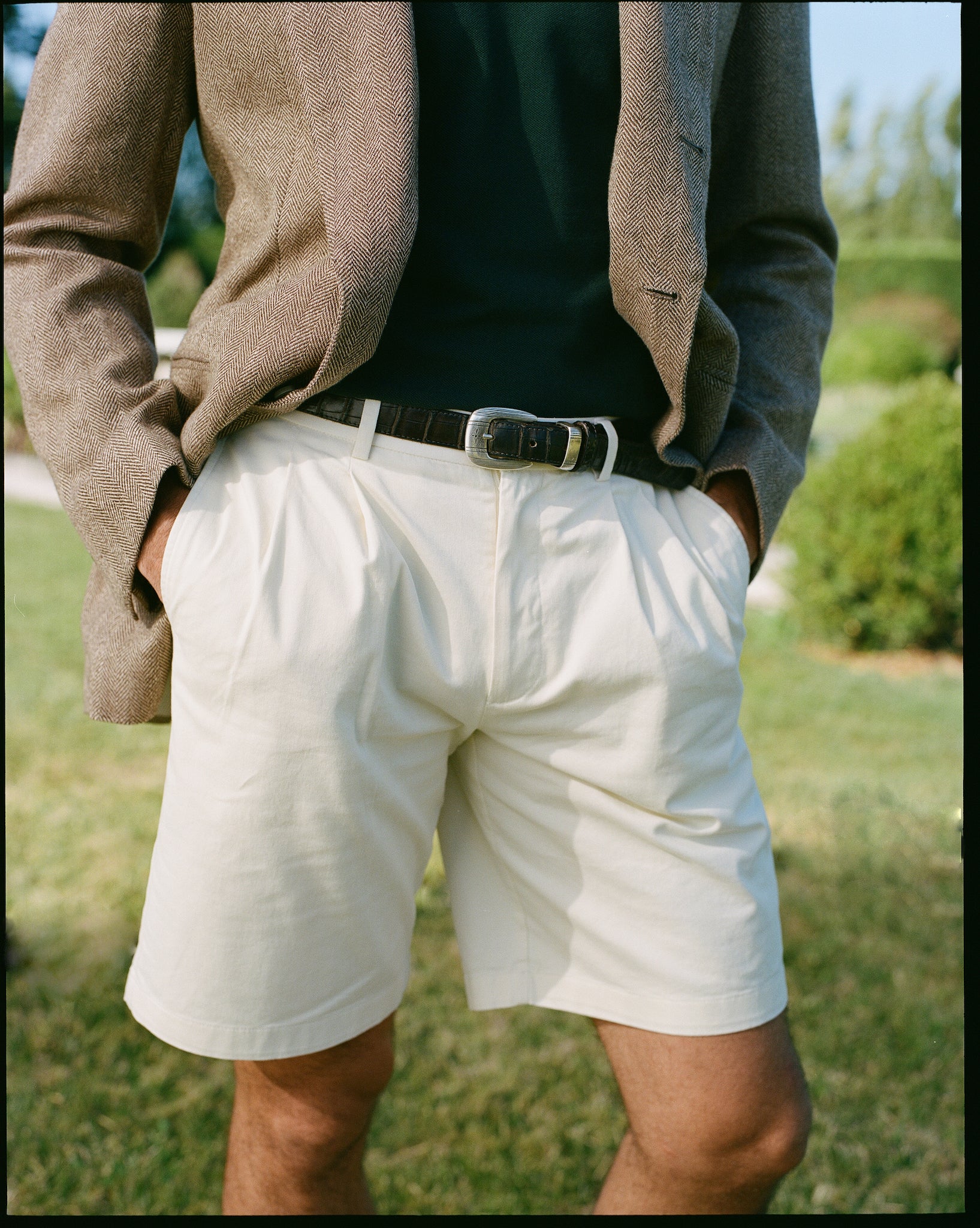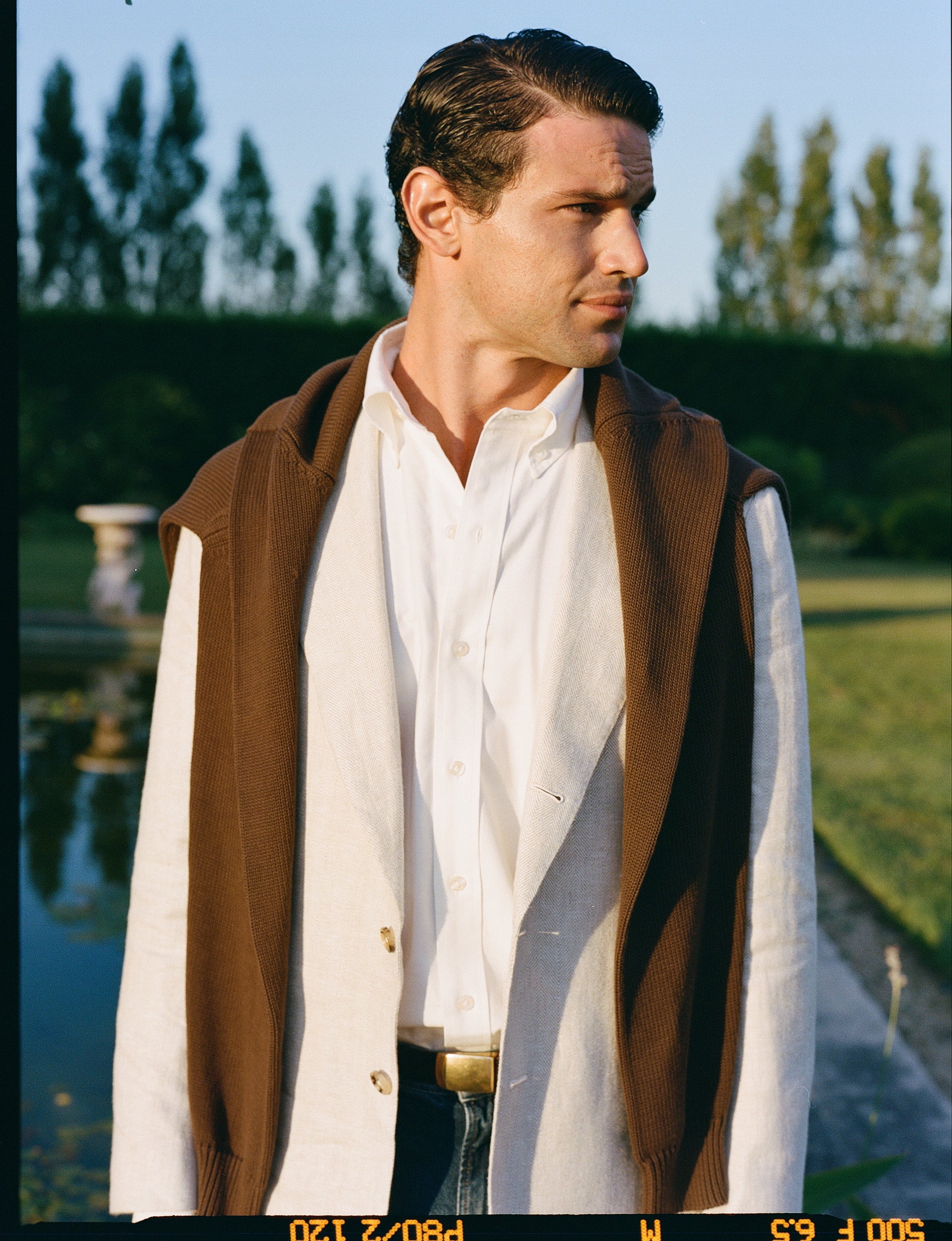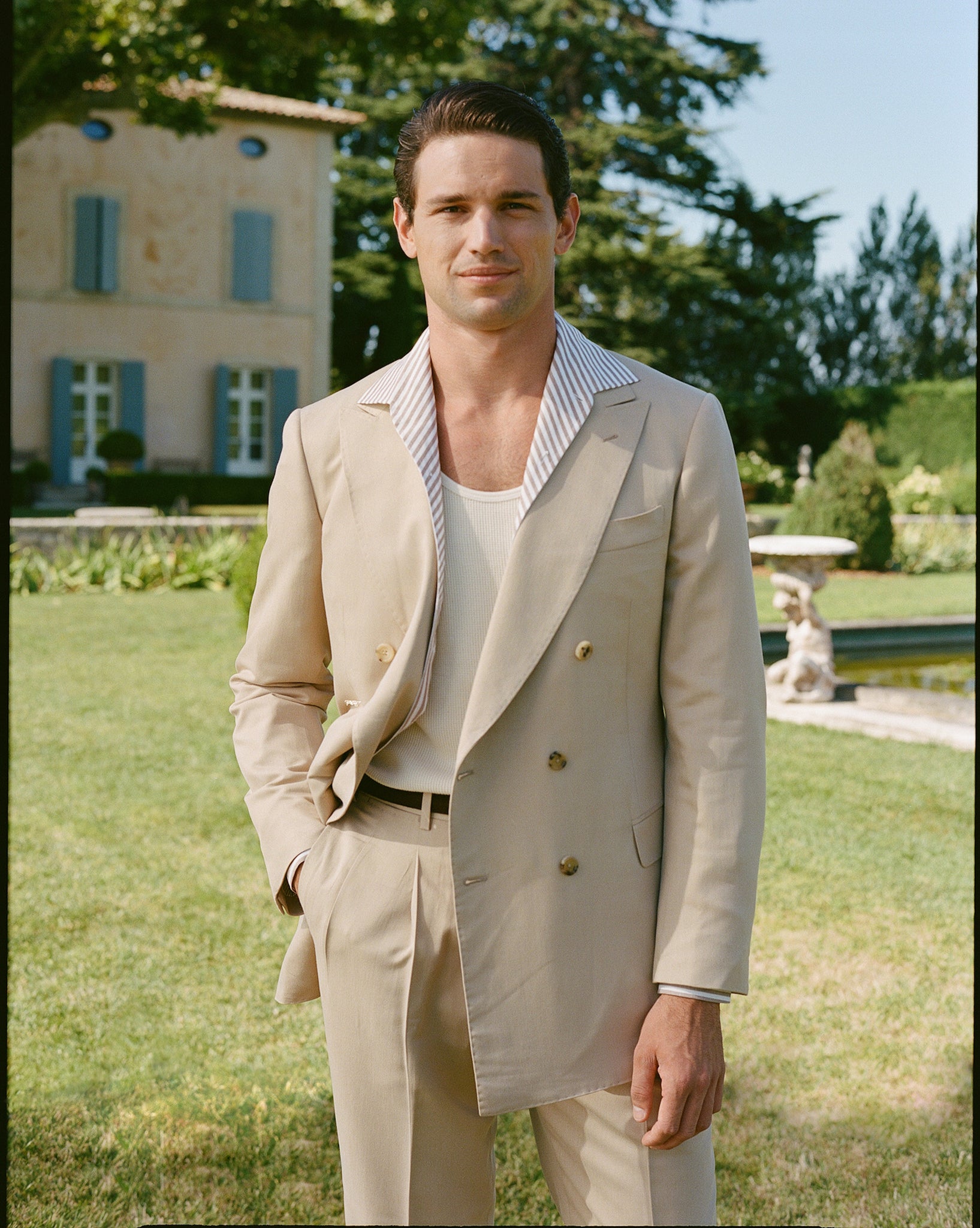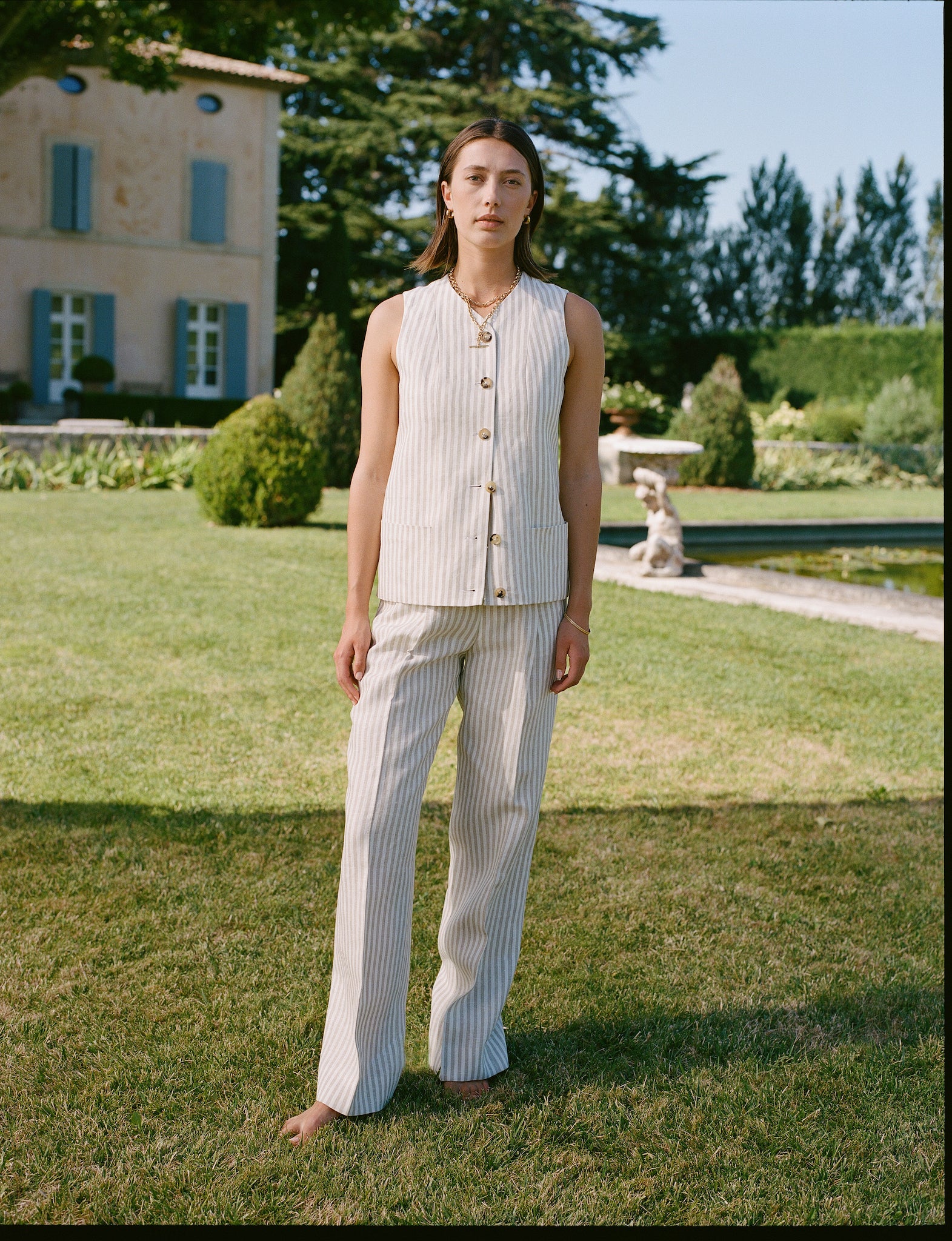 We pile into the Mehari, and with chatter and the rustle of our clothes in the wind, we buzz away to Saint-Remi for a light aperitif. Welcome to Part Two of our little Provencal experience. Here you'll find a collection of softly tailored elegant looks for once you've left the pool and the evening calls.