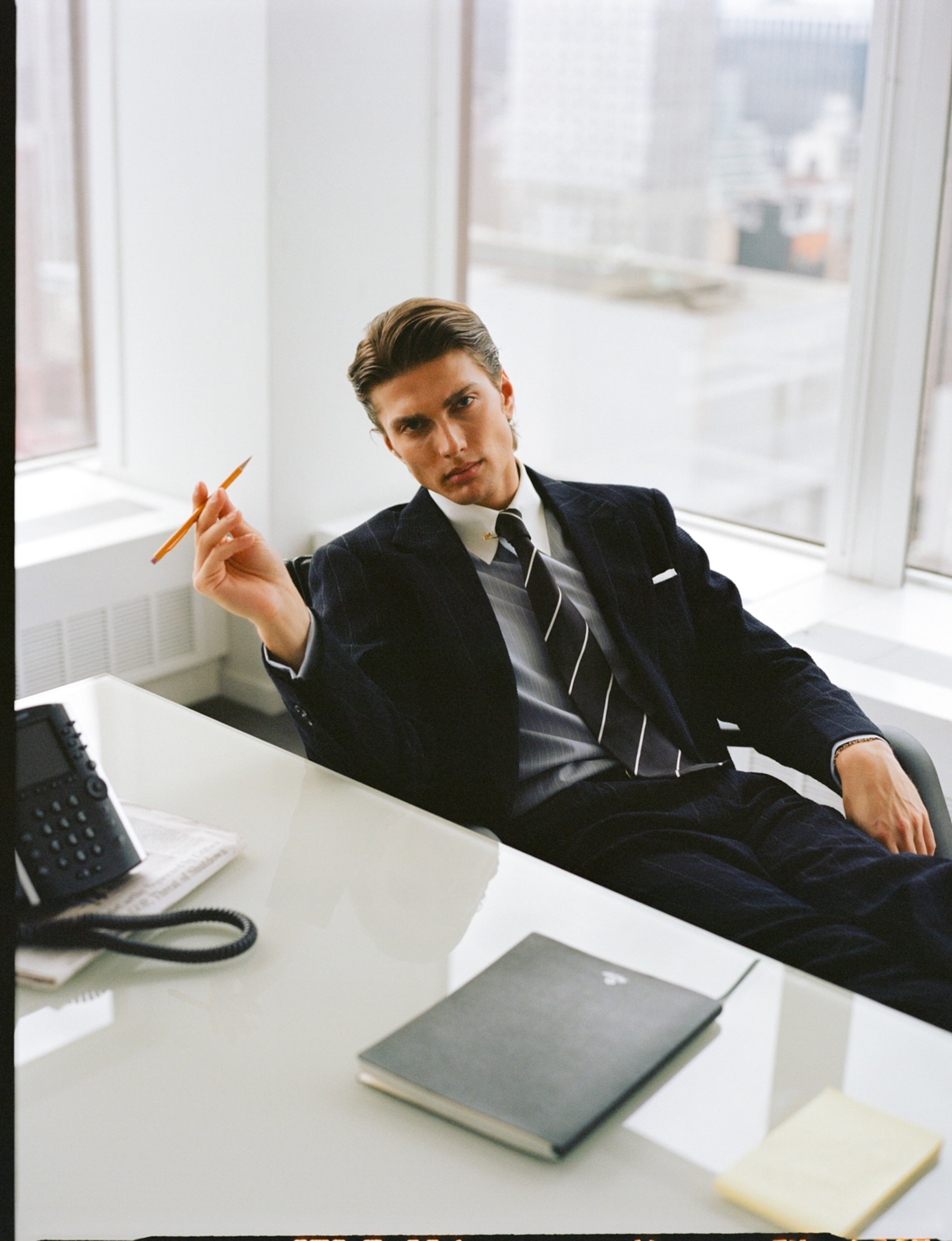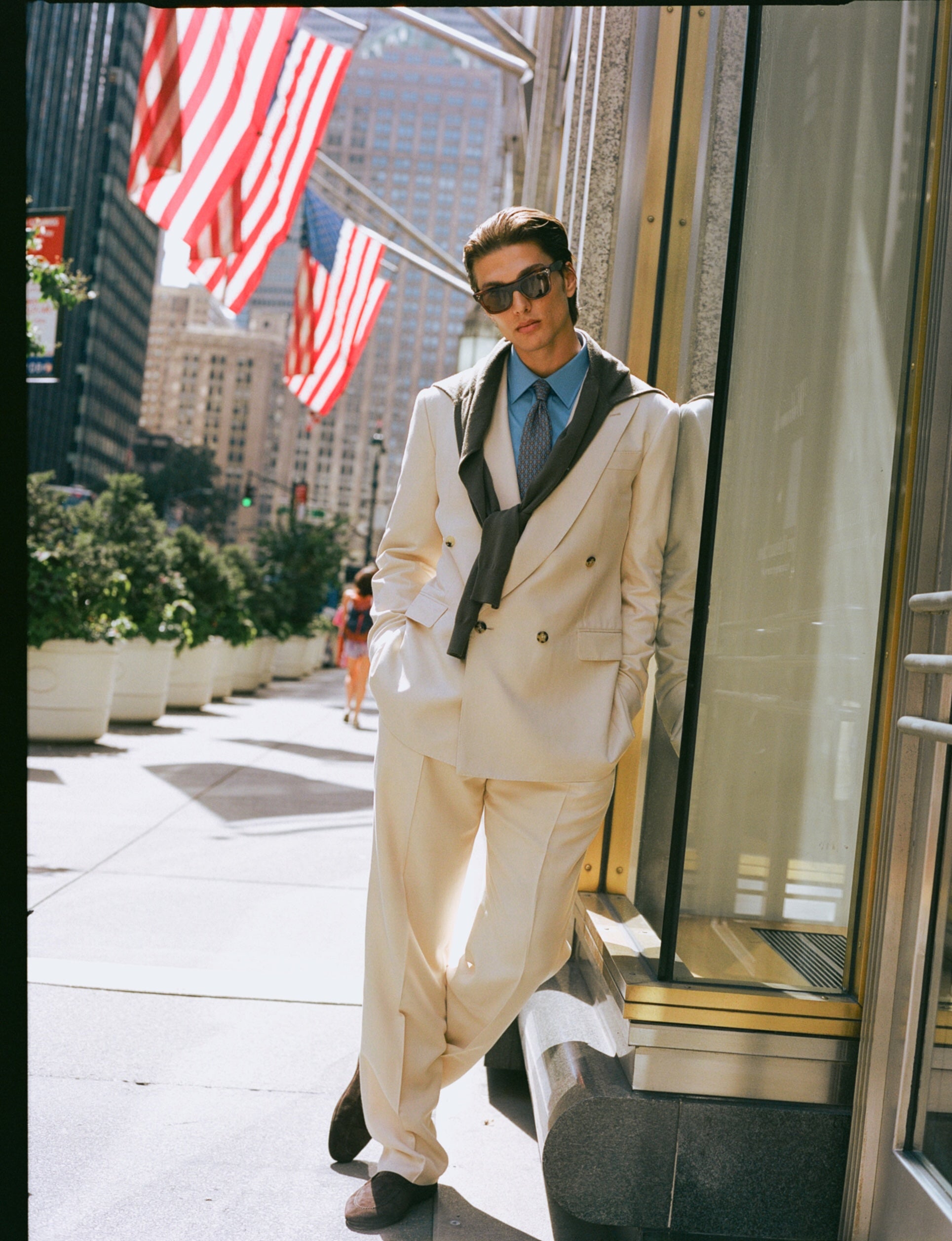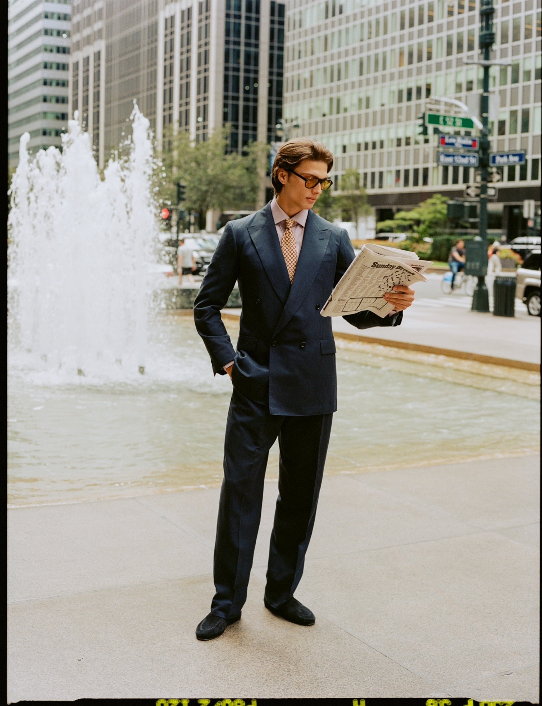 Following are some of our current suggestions, shot on location in Wall Street and Mid Town, by your favourite photographer James Harvey-Kelly. Silk, seersucker, merino gabardine, contrast collars, cornflower blue shirts, regimental stripe ties...