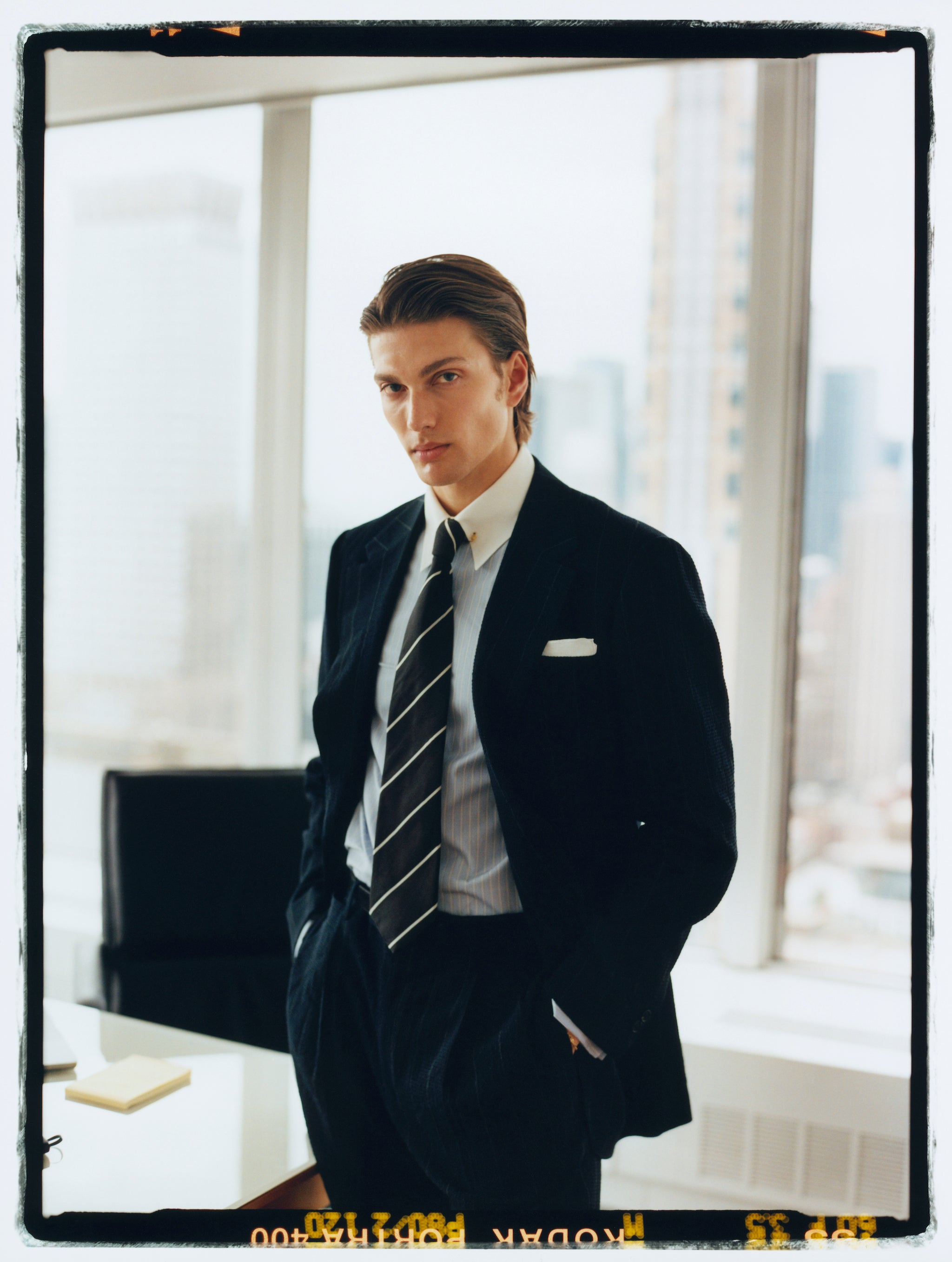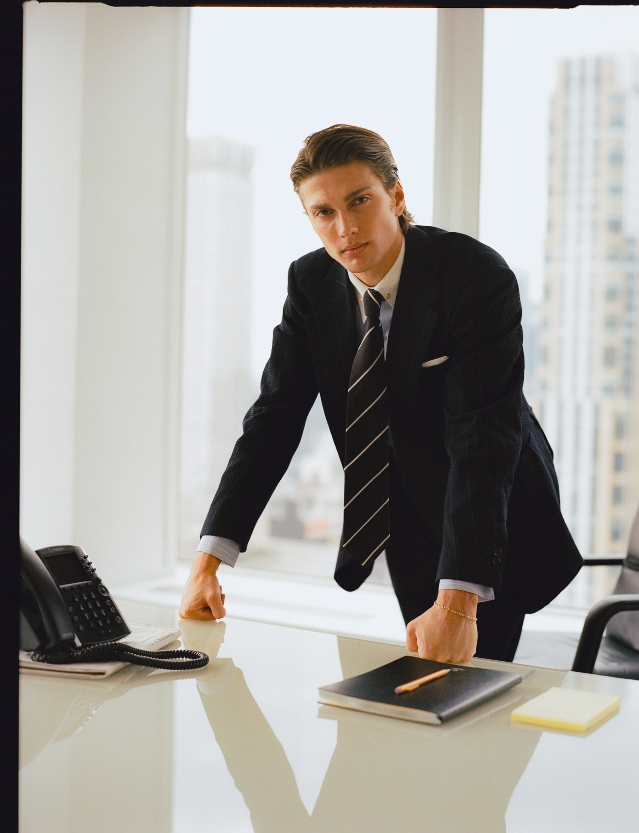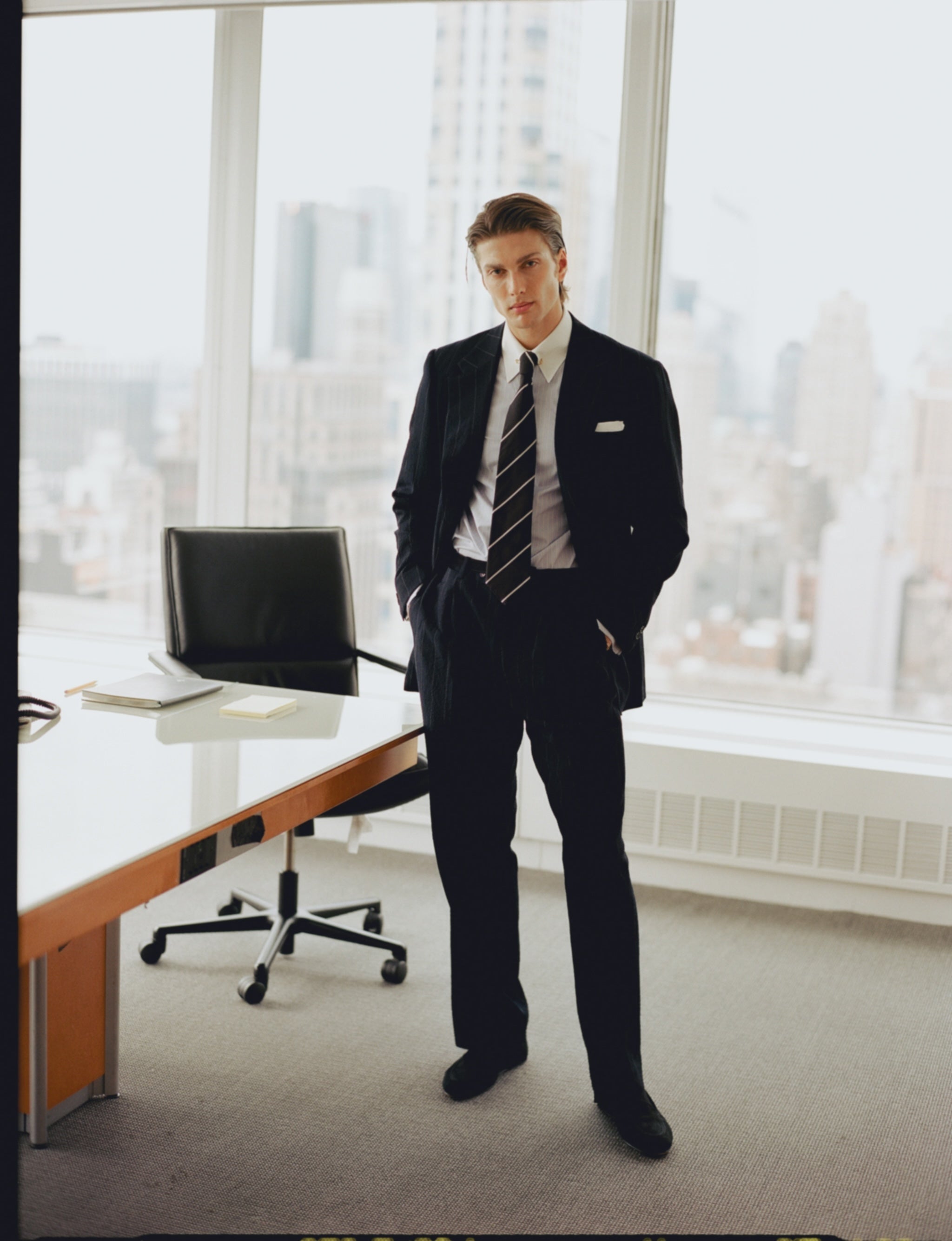 Following are some of our current suggestions, shot on location in Wall Street and Mid Town, by your favourite photographer James Harvey-Kelly. Silk, seersucker, merino gabardine, contrast collars, cornflower blue shirts, regimental stripe ties...