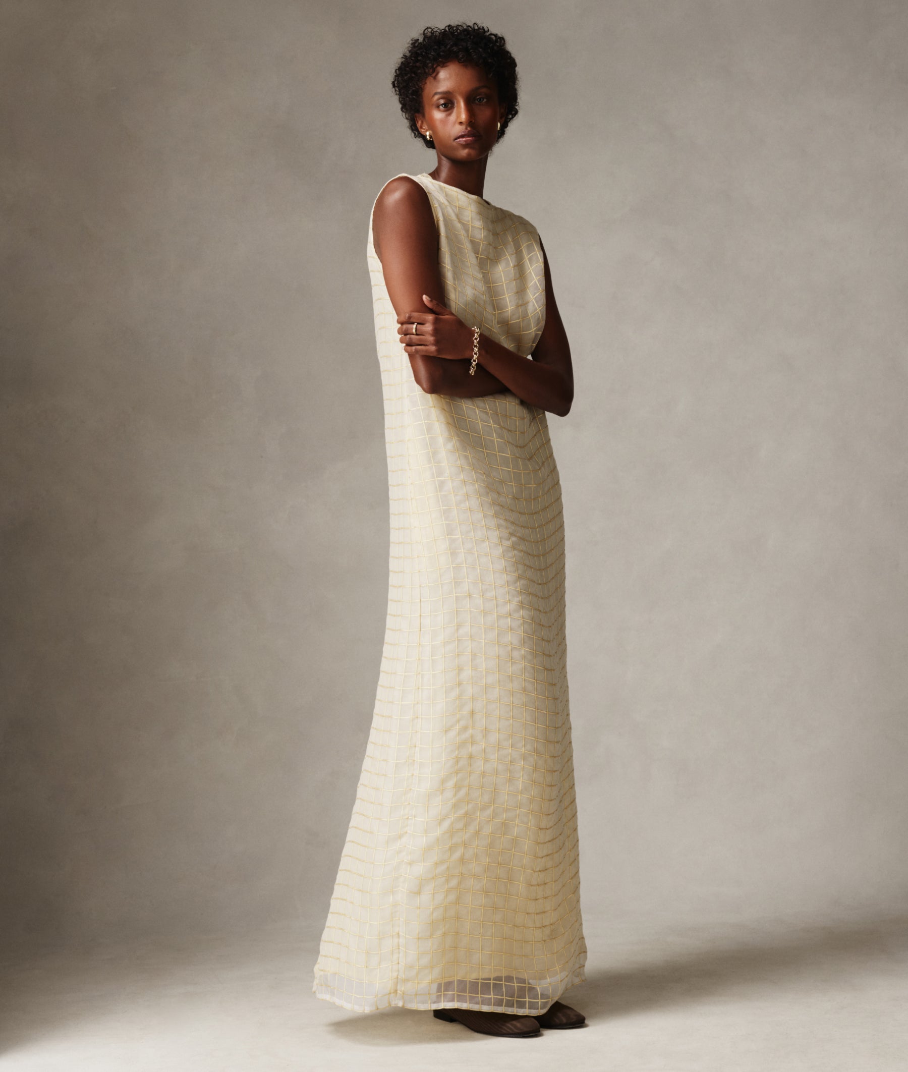 Right now our teams are busily preparing our stores for the October women’s capsule collection and an essay in beauty and pleasure it is. We ought’nt pick favourites but the new Tia series is just too magnificent to not admit quietly under-one’s-breath that it is the best looking of the children, not staying the others are spuds by any means, but this one will definitely garner unfair treatment. Tia is made from an ethereal fabric - a golden jacquard lattice on silk organza woven in Como, Italy and she comes in a top, skirt and dress.