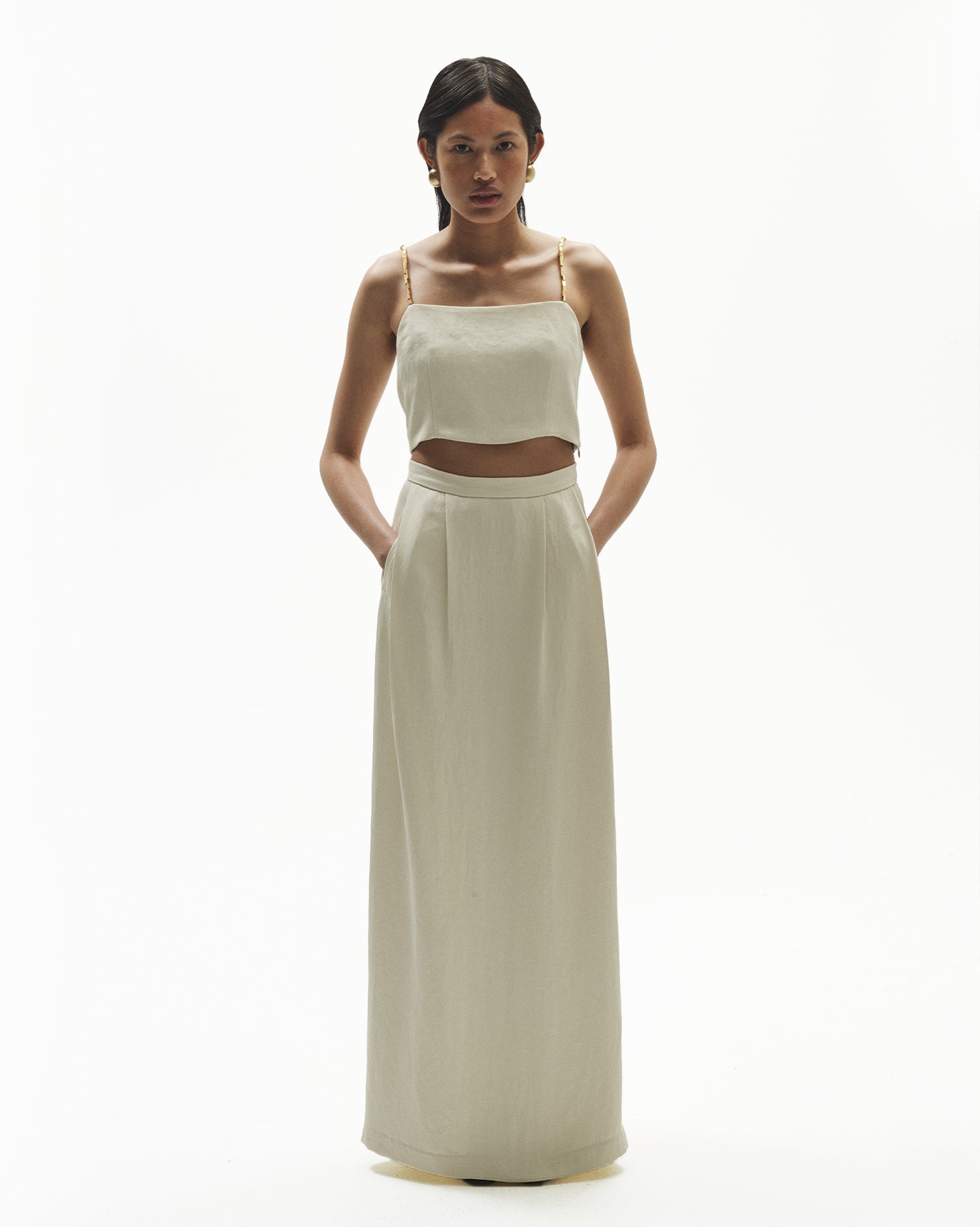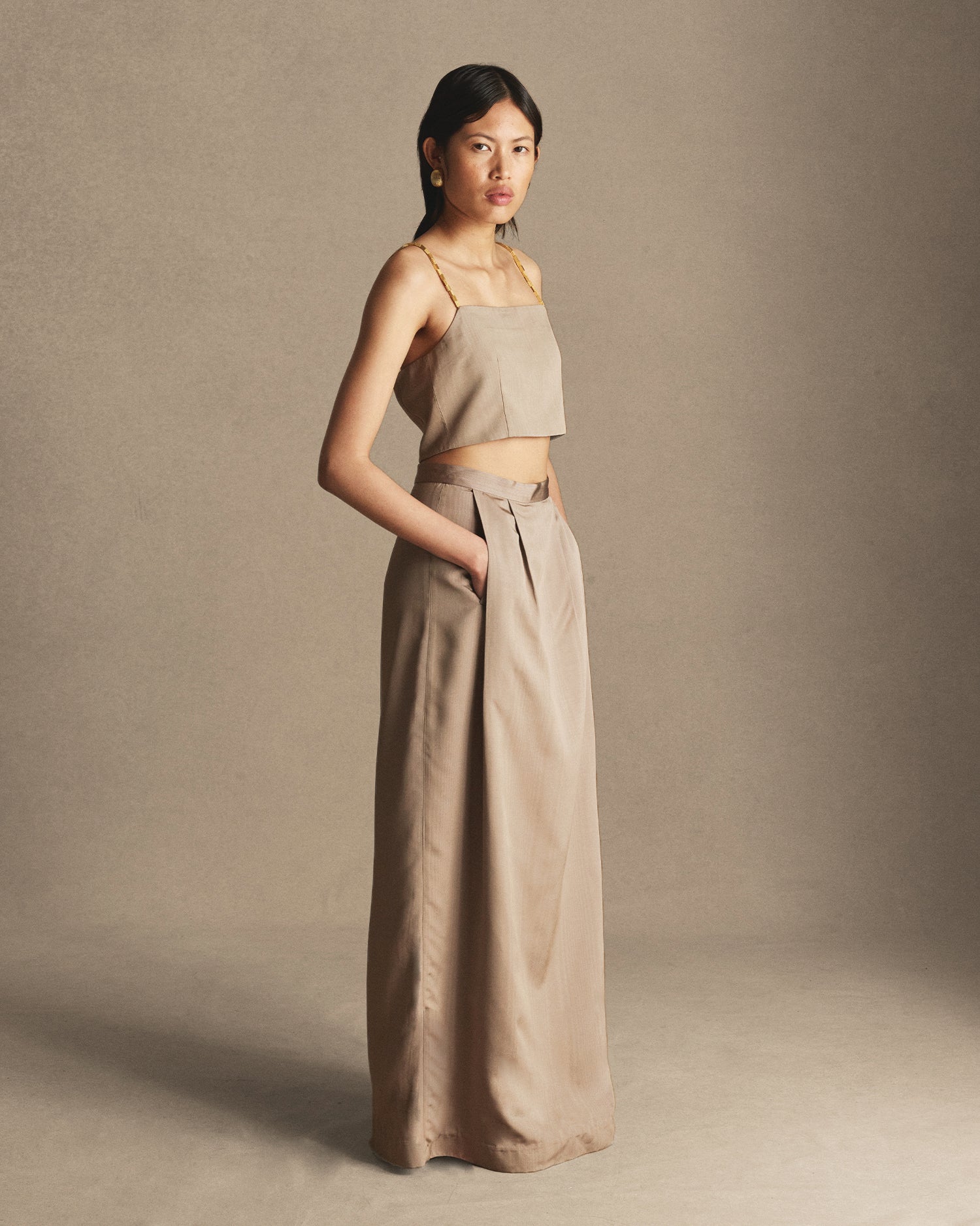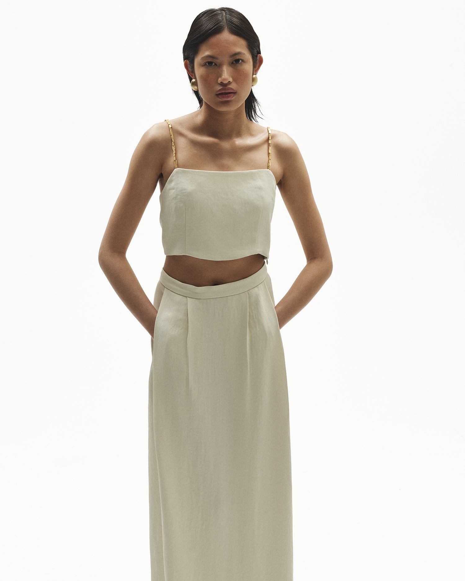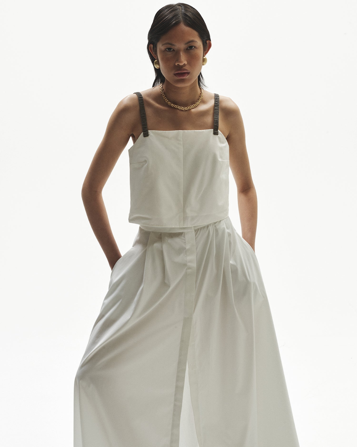 At this moment we introduce a ready-to-wear tailoring collection in the Georgia and Ava series which oscillates comfortably between the office and not-in-the-office. There are sleek knitwear pieces in tops, tanks and dresses along with resort looks like the Hanna top and dress and the perfect low-key slip dress called Caroline.