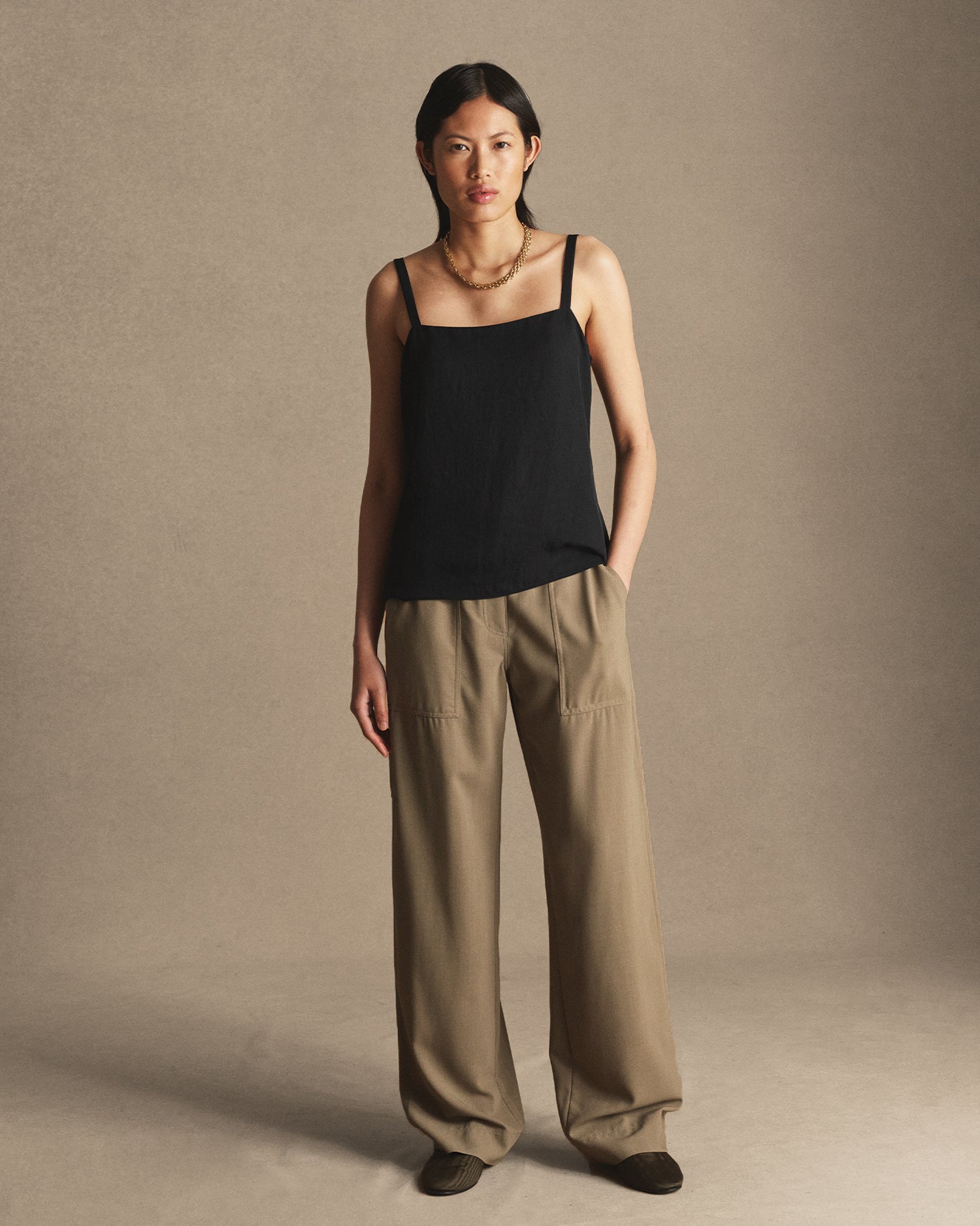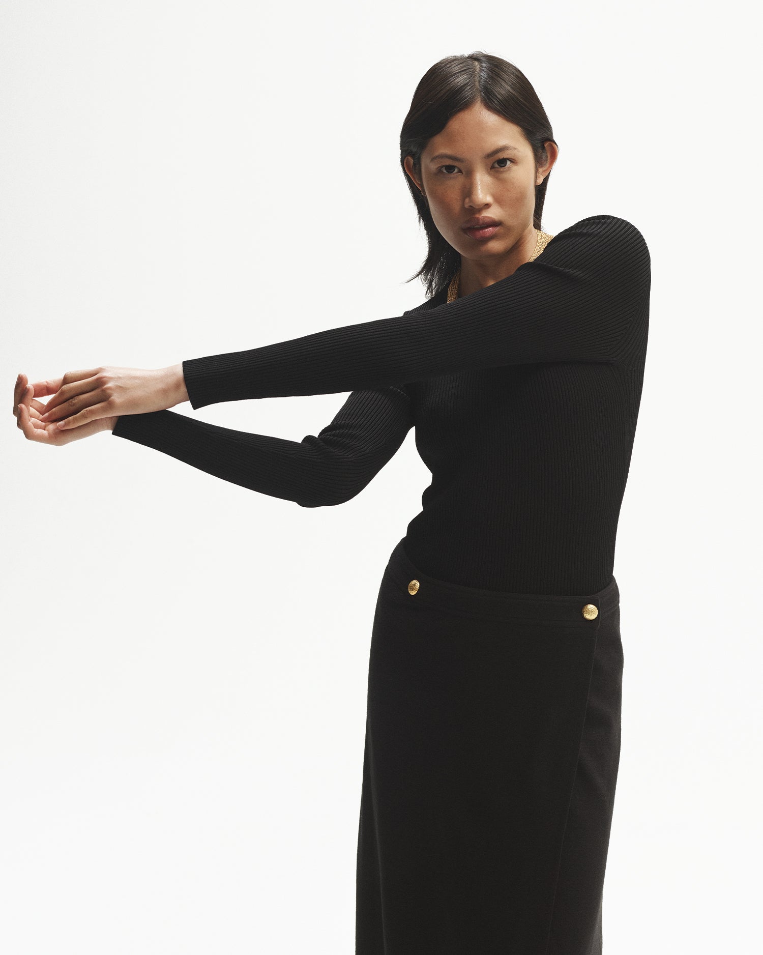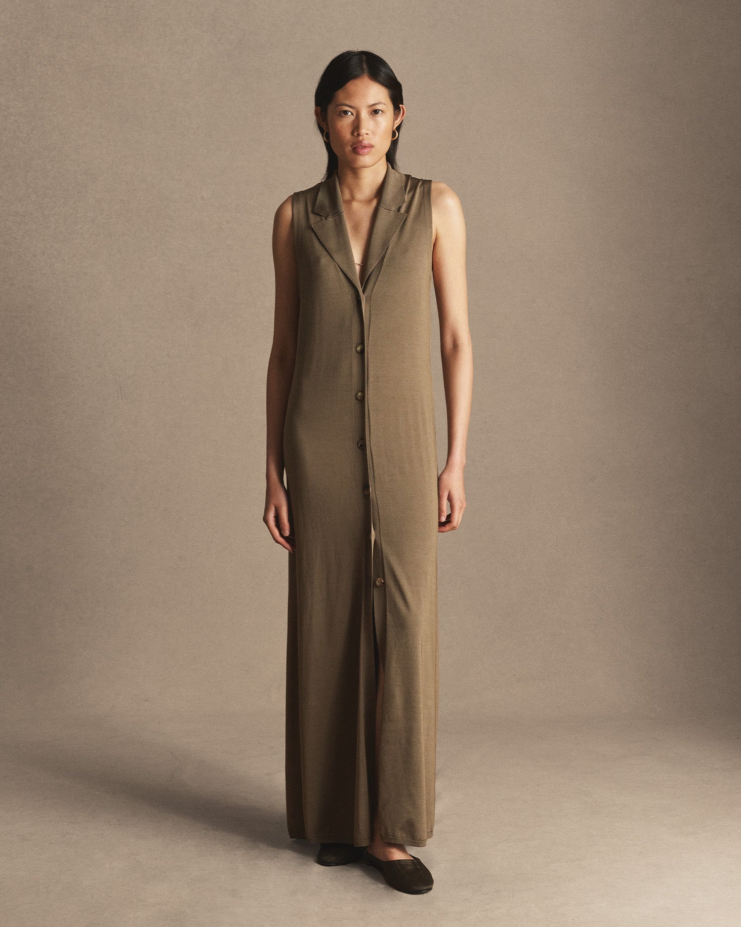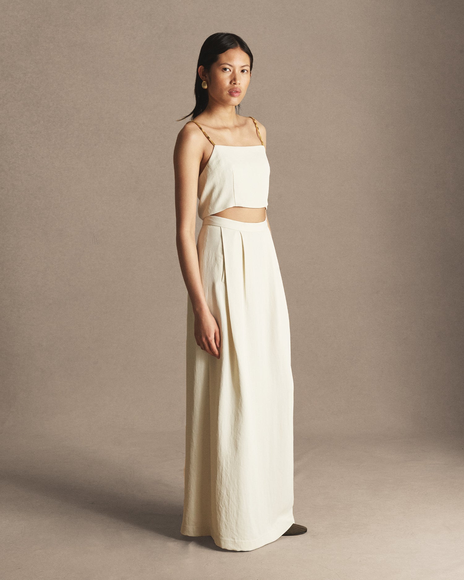 At this moment we introduce a ready-to-wear tailoring collection in the Georgia and Ava series which oscillates comfortably between the office and not-in-the-office. There are sleek knitwear pieces in tops, tanks and dresses along with resort looks like the Hanna top and dress and the perfect low-key slip dress called Caroline.