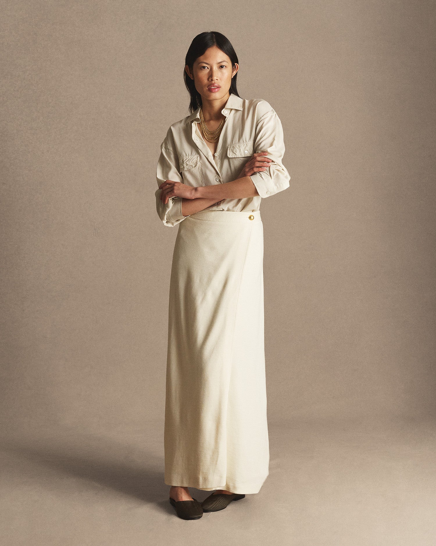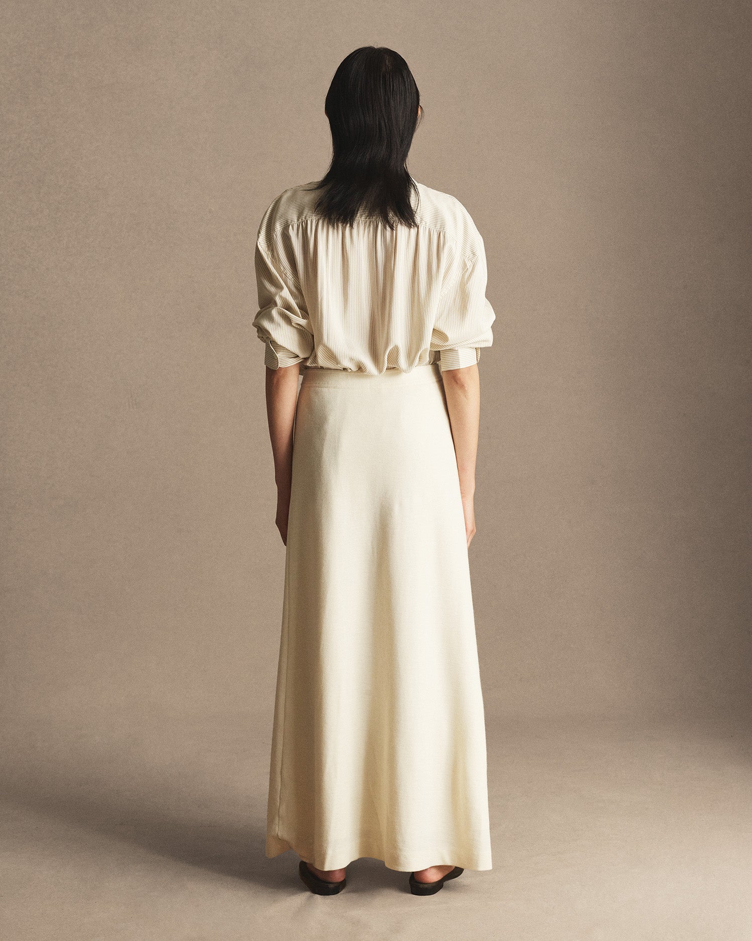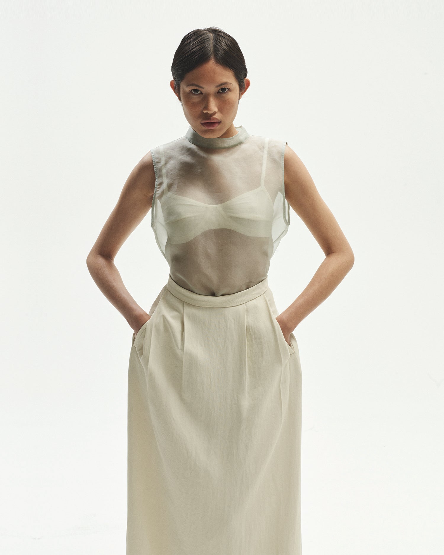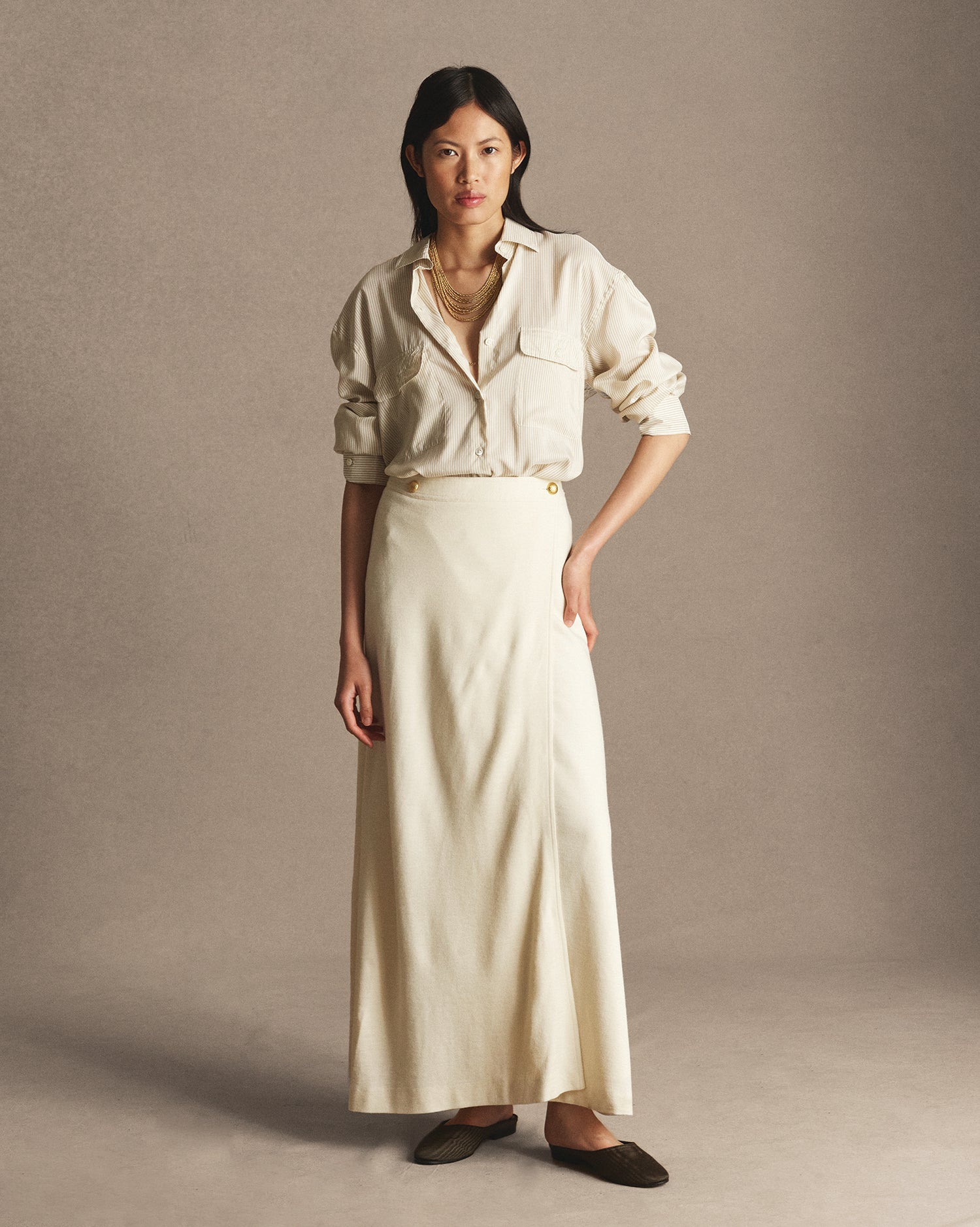We are about fabric. Artist Robert Rauschenberg said “…you begin with the possibilities of the material”. We agree. In our September 24 lookbook you will find limpid silk organza, crisp high twist merino, slubby linen-triacetates, sharp poplins, several silks and rich wool blends draped over the remarkable Ploy Rida and framed-up by the skilled lens-man Jake Terry.